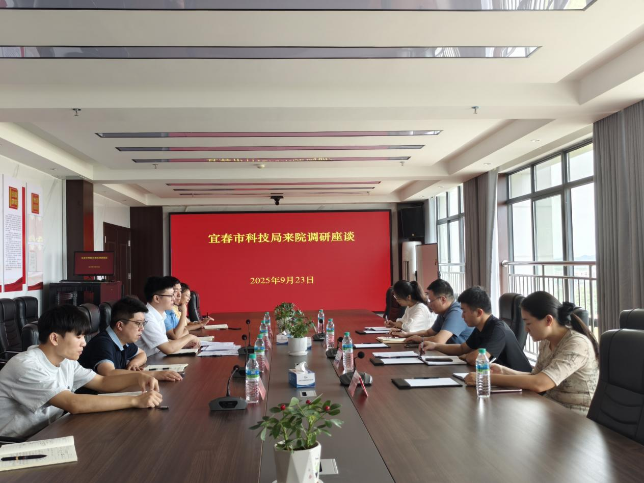 9月23日,宜春市科技局副局长晏宗文一行就科研仪器设备共享事宜来院开展专题调研,研究院负责人周贺鹏、党支部书记胡凯建等参加座谈。