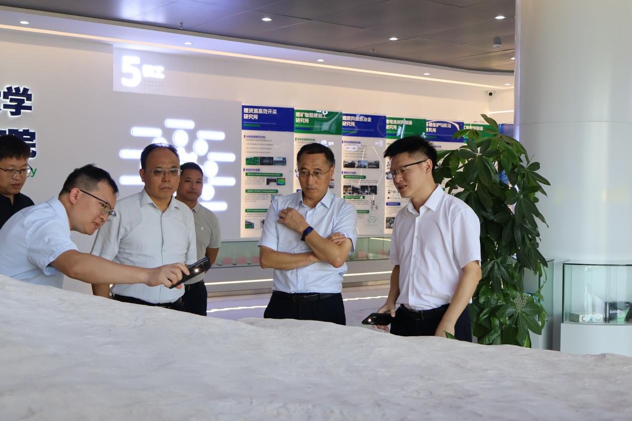 刘祖文书记先后参观了研究院展厅、研发中心和中试车间,实地察看了采矿、选矿、冶炼、环境、正负极材料实验室、中试车间及党建活动室。在参观过程中,他边走边问,详细了解了展厅布局、实验室功能定位、科研项目进展、人才培养及成果转化等情况,深入探究了研究院在推动产业链上下游协同创新方面所发挥的重要作用。